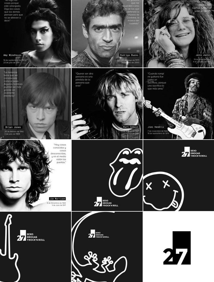 “Puerta 27” es el nombre que los alumnos de 3er año de la Licenciatura de Diseño Gráfico han dado a la Muestra inspirado en este fatídico club, que rinde homenaje a diez músicos de enorme influencia en la música contemporánea que perdieran sus vidas a los 27 años.